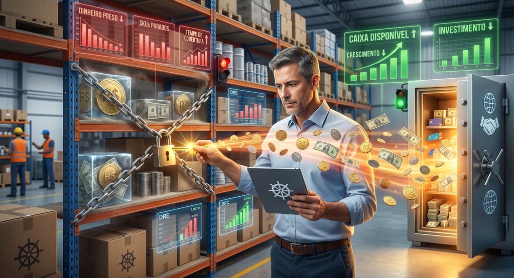 O capital de giro imobilizado no estoque é mais do que um problema operacional; é um freio de mão puxado no crescimento do seu negócio. Ele é um sintoma de desalinhamento entre compras, vendas e finanças.