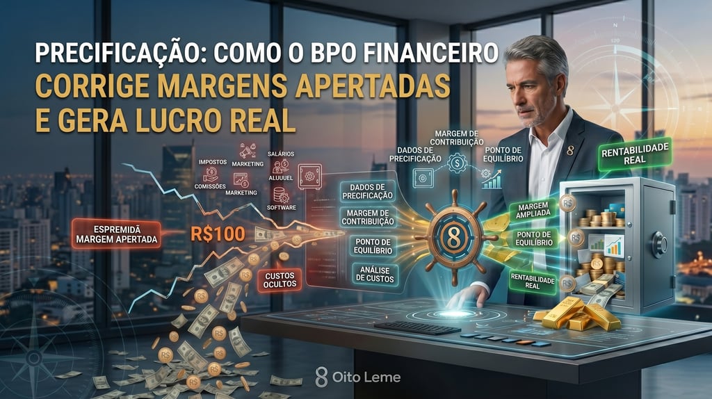 Precificação margens apertadas BPO financeiro? Descubra como parar de 'pagar para trabalhar' e ter lucro real com uma gestão de custos e preços baseada em dados.